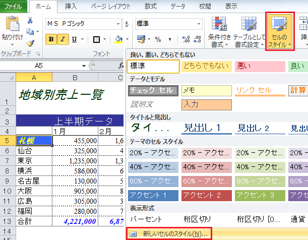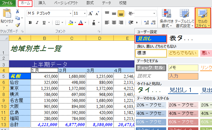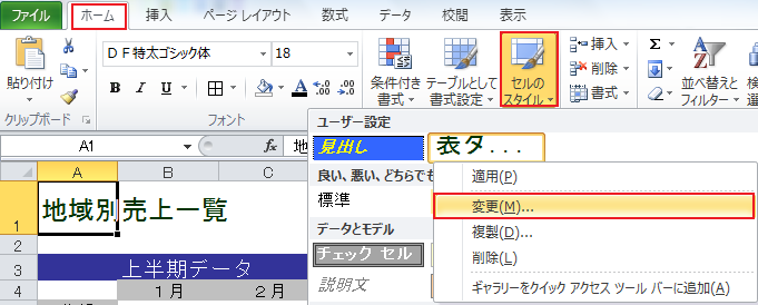 スタイルが変更され、そのスタイルを使用しているセルの書式も変更されました。