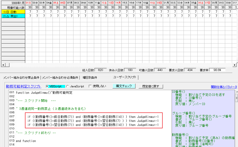 if ((勤務番号()=翌日勤務(7)) and (勤務番号()=翌日勤務(14)) ) then JudgeKinmu=-1
